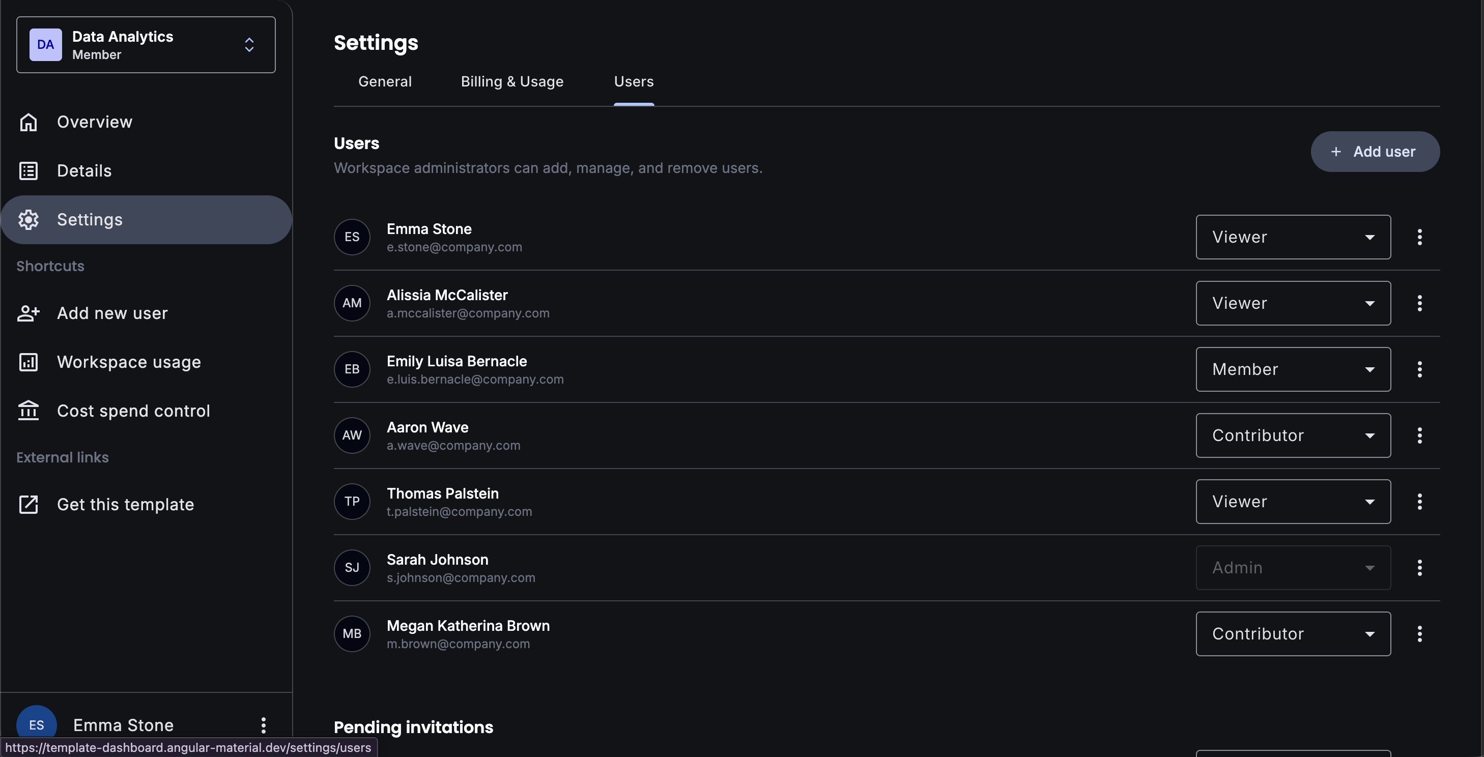 A comprehensive dashboard template featuring analytics, charts, tables, and responsive design. Built with the latest Angular Material components and best practices.