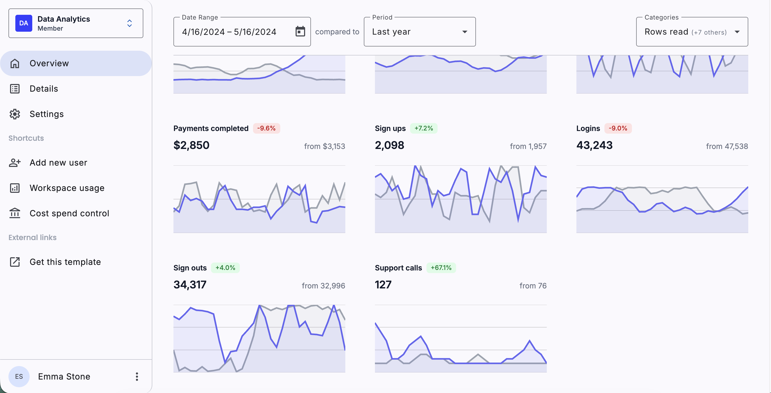 Interactive charts & stats