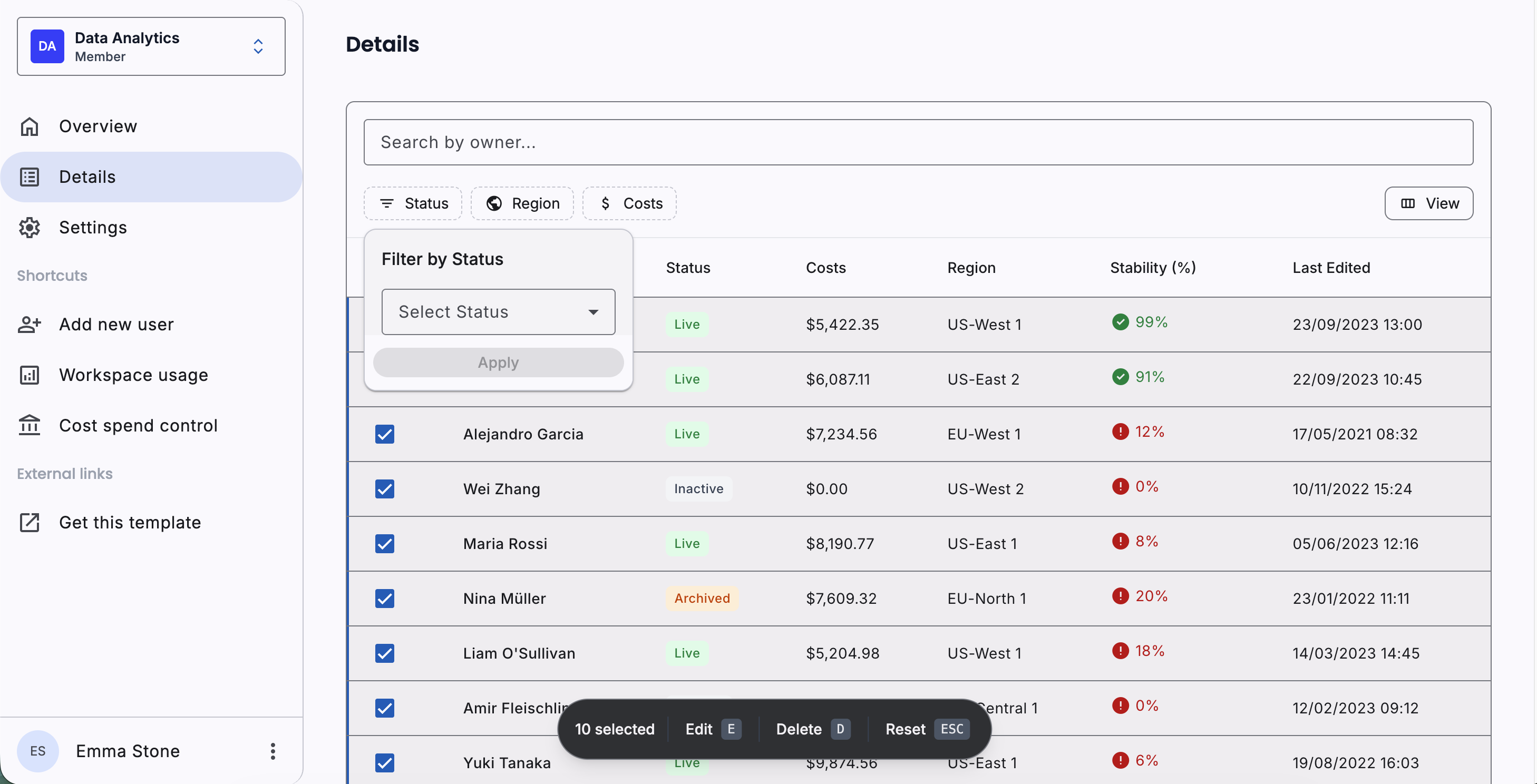 Table filtering & bulk edit